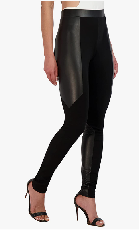 BCBGMAXAZRIA- Black Women's High Waisted Mixed Media Legging Skinny Silhouette Faux Leather Panel Pant
