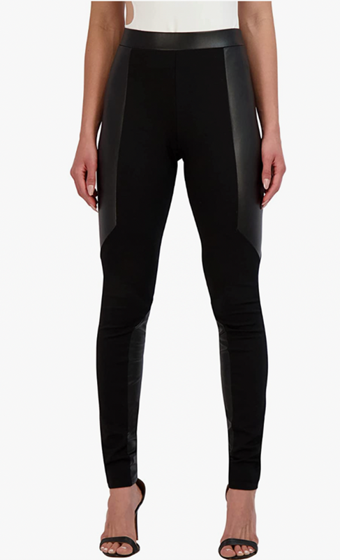 BCBGMAXAZRIA- Black Women's High Waisted Mixed Media Legging Skinny Silhouette Faux Leather Panel Pant