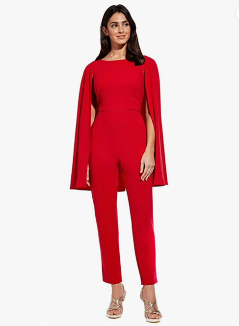 Adrianna Papell - Red Knit Crepe Cape Jumpsuit